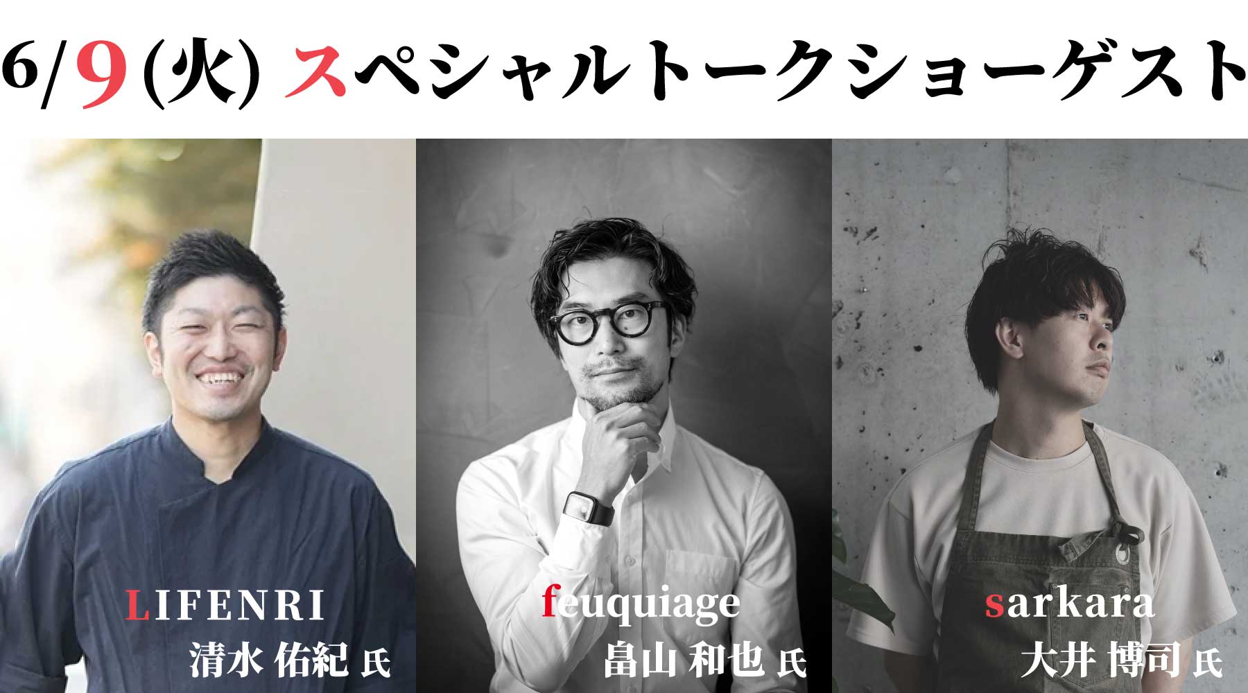 ※両日とも、トークショーのお席はご予約制・先着順とさせていただきます。 定員に達し次第、締め切らせていただきますのでご了承ください。